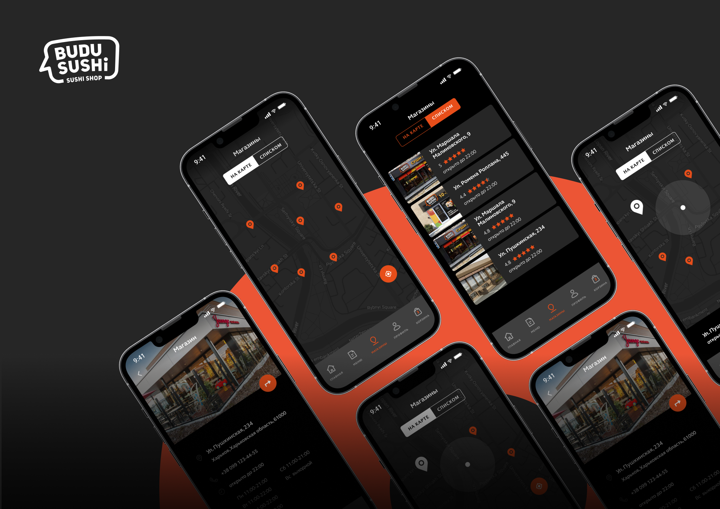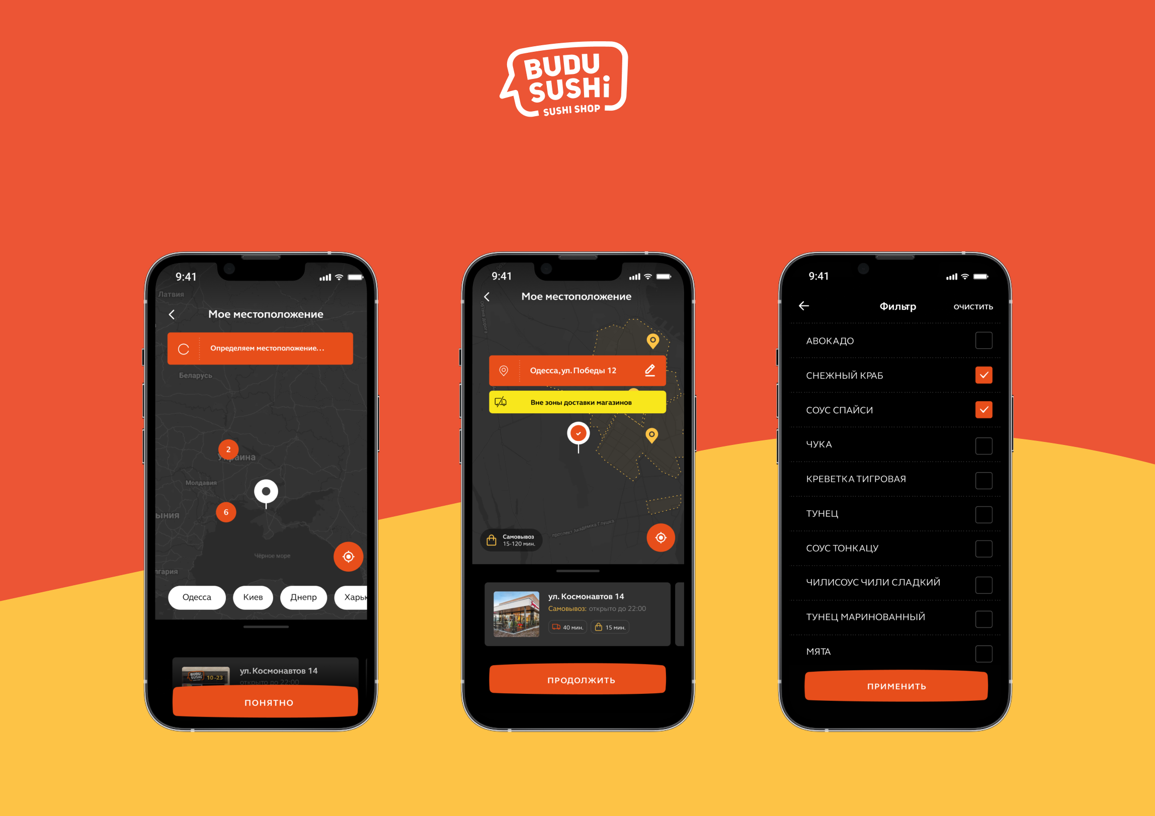 Когда мы начали работу над проектом, у сети Budusushi уже было открыто более 20 магазинов по всей Украине. Поэтому они стремились создать приложение, которое позволило бы пользователям легко находить ближайшие рестораны.